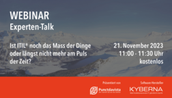 Im Webinar tauschten sich die vier Service Management Experten von Punctdavista AG und KYBERNA AG rege über die Thematik aus. Haben Sie es verpasst? Kein Problem. Hier geht's zum Video in voller Länge.