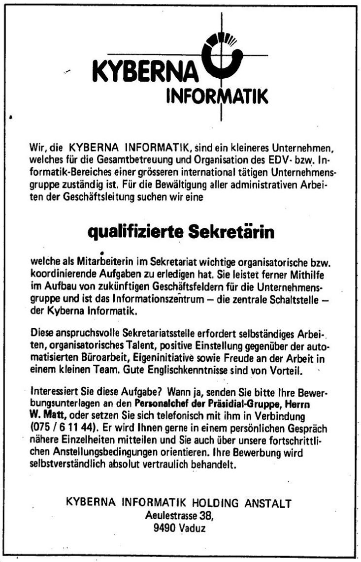 Hier und heute werfen wir einen kurzen Rückblick auf die Geschichte der KYBERNA – von den Anfängen bis heute. Dabei zeigen wir, wie aus einer Vision ein erfolgreiches Unternehmen wurde, das seit vier Jahrzehnten die digitale Entwicklung in Liechtenstein und darüber hinaus mitgestaltet.